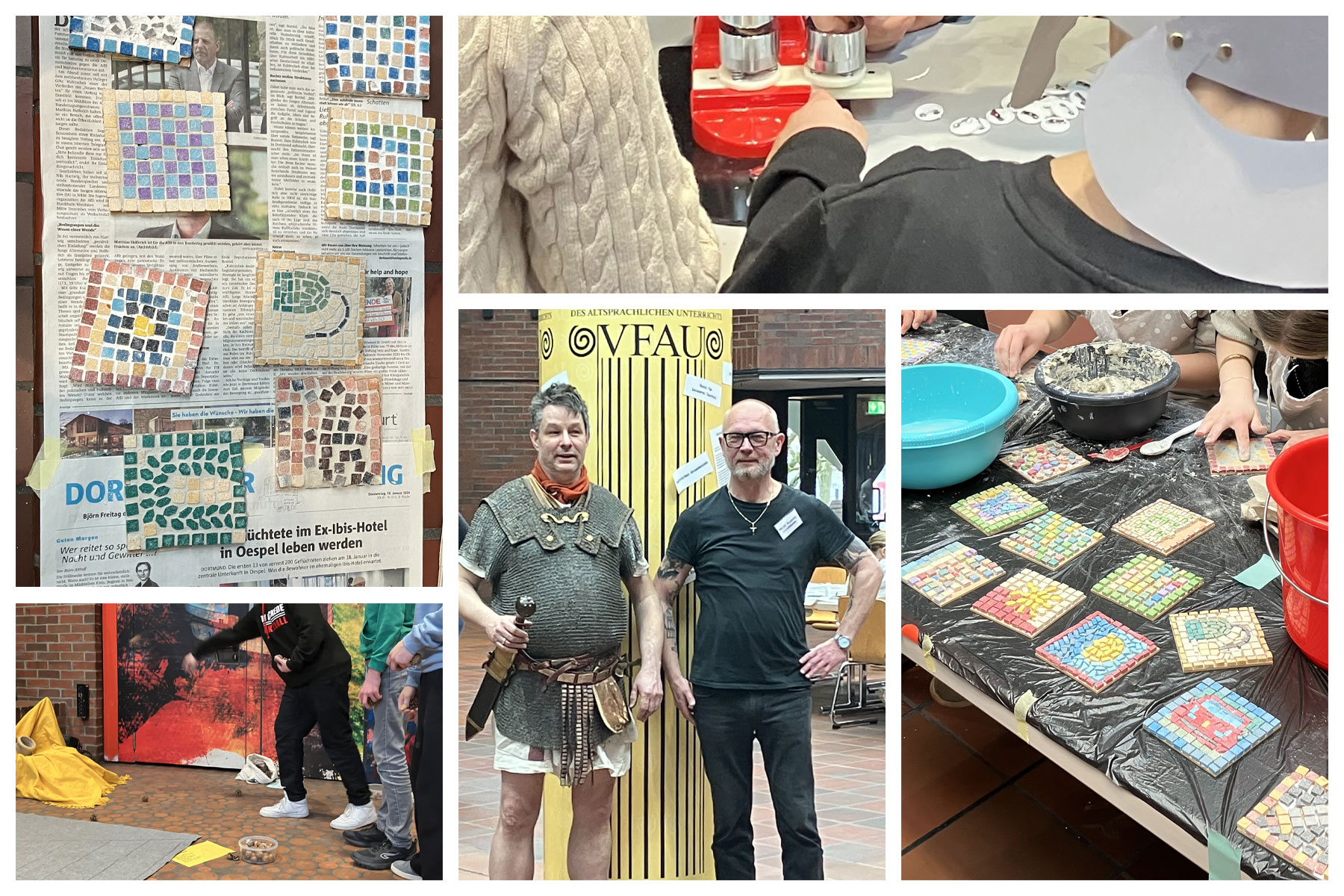 Das spannende Angebot können die Bilder nur z. T. abbilden - von der Mosaikherstellung über Buttonmaschine und Wachstäfelchen zum Schnupperunterricht und antiken Spielen. Am besten schauen Sie im nächsten Jahr selbst vorbei!
