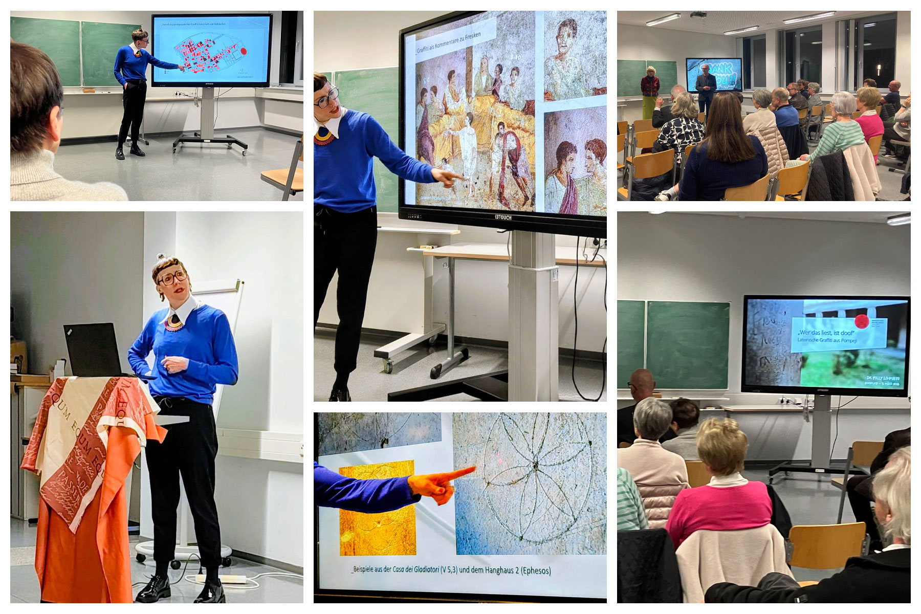 Dr. Polly Lohmann, Kuratorin des Antikenmuseums der Universität Heidelberg, Archäologin, erfolgreiche Bloggerin und vieles mehr, führte mit ihrem spannenden Vortrag in die Welt der Pompejanischen Graffiti ein.